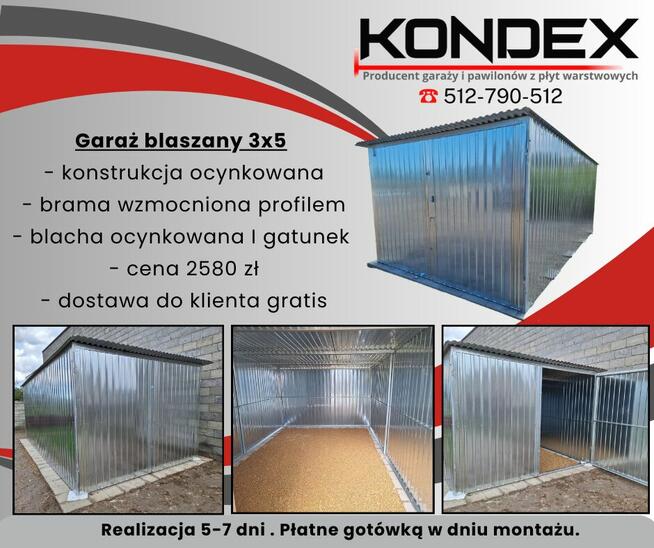 Standardowy garaż 3x5 sprzedam. Prosto od producenta. Blacha ocynkowana w I gatunku. Transport i montaż gratis. Spad ...